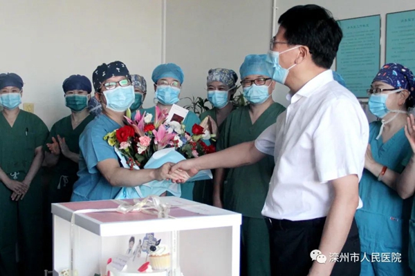 党委书记张力表示,自新冠疫情以来,广大医务工作者任务繁重,尽职尽责进行核酸采集、核酸检测、院内预检分诊、发热门诊就诊、隔离病房救治等疫情防控工作。希望大家继续坚定为患初心、勇担医者使命,恪守医德医风医道,修医德、行仁术,继续为滦州市人民医院高质量发展作出新的更大贡献。