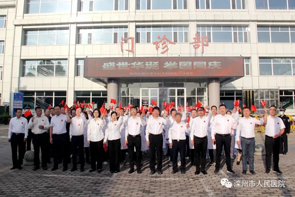 9月25日上午,在伟大祖国74周年华诞来临之际,滦州市人民医院在门诊楼前广场举行了迎国庆升旗仪式,医院党政领导班子成员及职工代表参加了升旗仪式。升旗仪式由副院长周凤娟主持。